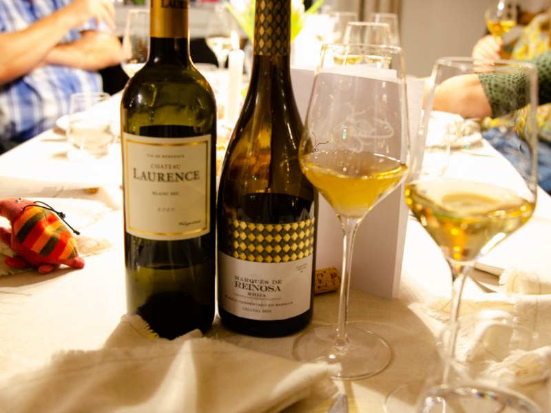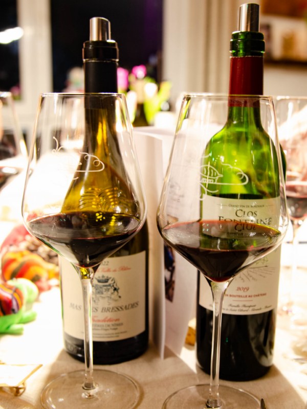 2022 Costières de Nîmes rouge Tradition - Mas des Bressades, Südfrankreich (9,90 € extraprima-weinversand, leider im Moment ausverkauft) und 2019 Château Clos Fontaine 'Premier Vin' – Francs (Côtes de Bordeaux) (13,80 € extraprima-weinversand). Der Südfranzose aus 60% Grenache Noir, 30% Syrah und 10% Cinsault hat allen richtig gut geschmeckt: Konzentrierte Frucht, frisch und dicht, cremig, unkompliziert, vollmundig, körperreich. Einen Wein den man einfach schmeckt und der einem schmeckt, egal ob solo oder zum Essen.
