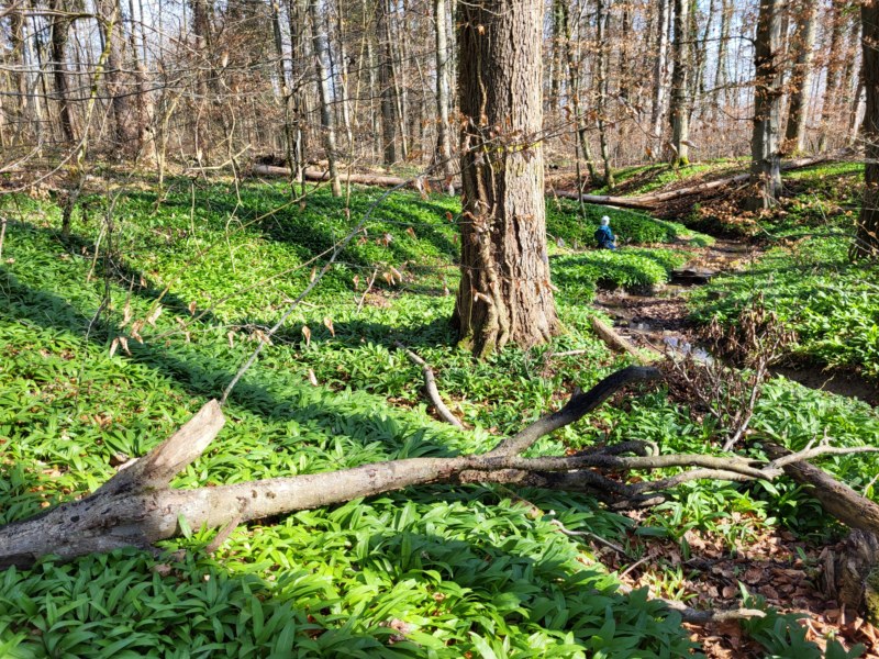 Im März ist es soweit, das erste Grün des Jahres zeigt sich. Die meisten Bärlauchfreunde haben ihre bekannte Stelle, wo jedes Jahr zuverlässig ein dutzend Bärlauch wächst. Wir müssen nicht weit gehen. Gleich wenn man in unseren Wald hineinkommt, an einem kleinen Bach wächst er in Hülle und Fülle. Die Zeitspanne zum Ernten ist nicht sehr lang. Um so jünger er ist, um so aromatischer (manchmal sogar richtig scharf) ist er. Aber man kann Bärlauch bzw. Bärlauchpesto -öl und -butter super einfrieren.