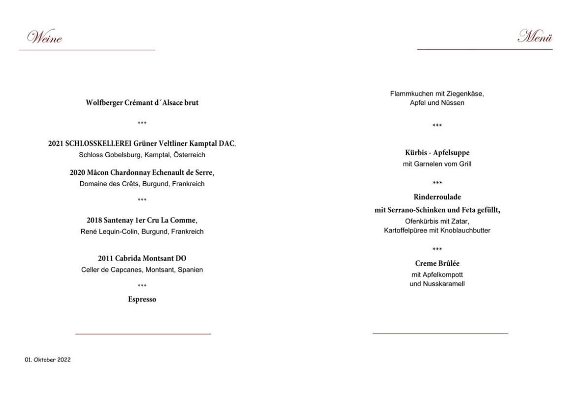 Es war das erste Menü nach meiner Babypause und es war so toll. Liebe Gäste, leckeres Essen ausgezeichnete Weine, tolle Stimmung :-)