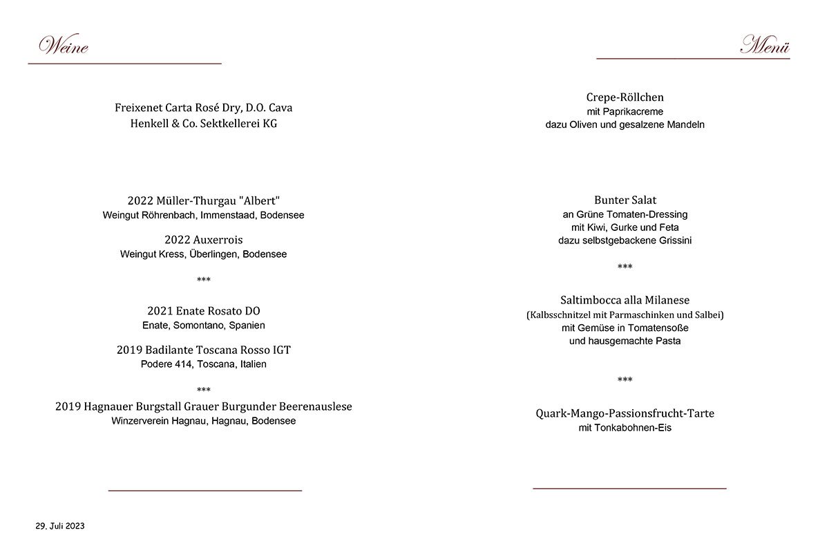 Unsere Vorspeise wurde von zwei Bodensee-Weißweinen begleitet.