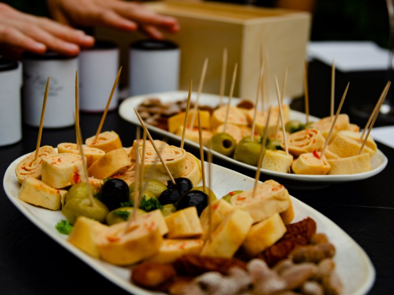 Nachdem wir unsere Nase sensibilisiert hatten konnte der Genuss beginnen. Antipasti und Rosé-Sekt: Paprika-Crêpes-Röllchen, gesalzene Mandeln, Oliven, getrocknete Tomaten und dazu Freixenet Carta Rosé Dry Cava. Ein Cava ist ein Sekt, der wie Champagner traditionell in der Flasche reift. Freixenet stellt Sekt seit 1914, also seit über 100 Jahren, mit der Méthode Traditionelle her. Mittlerweile in großen Mengen (nur so ist der Preis von knapp 7 Euro möglich), aber in wahrhaft guter Qualität. Der Carta Rosé ist angenehm frisch, feine Beerenaromen und elegant. Kräftig genug um Speisen zu begleiten, dabei ungemein erfrischend.