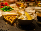 Quark-Mango-Passionsfrucht-Tarte mit Tonkabohnen-Eis, dazu 2019 Hagnauer Burgstall Grauer Burgunder Beerenauslese vom Winzerverein Hagnau - Der Hammer!