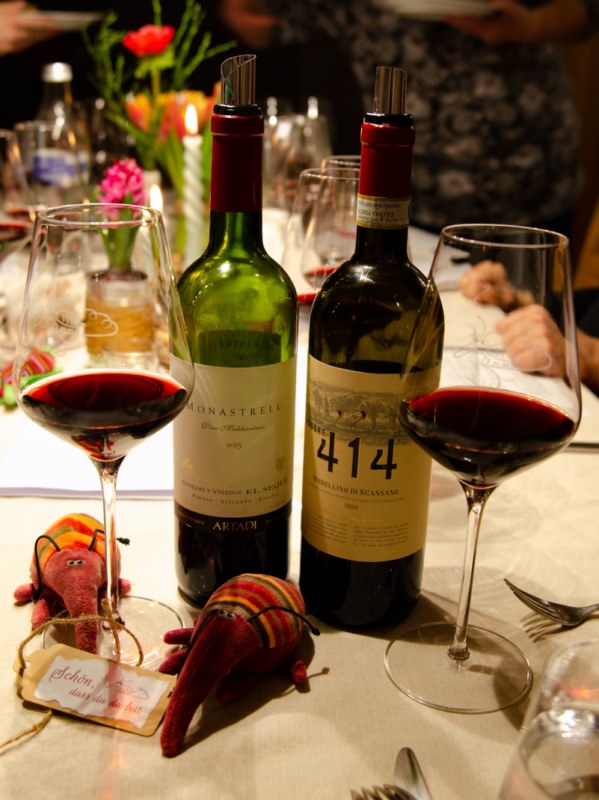 Der 2015 Monastrell Vino Mediterraneo von Bodegas Artadi aus Alicante war etwas weniger körperreich und hatte eine hellere Frucht als der Morellino. Außerdem hatte er eine feine Bitternote. Zur dunklen Schokolade perfekt.