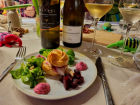 So zum Beispiel der Godefroy von Mumm Pinot Noir Rosé Dry. Dry bedeutet in der Sektsprache, dass er mindestens 17 g/l bis hin zu 32 g/l Restzucker hat. Er kommt also mit einer dezenten angenehmen Süße daher. Tolle rote Fruchtaromen, unkompliziert und doch elegant. Mit jedem Schluck leckerer. Zu unserem geschmacksintensiven Amuse, Röstbrot mit Tomatenbutter und Salami-Pilz-Snack, hätte ein kräftigerer und trockenerer Sekt besser gepasst z.B. der Wolfsberger Crémant.