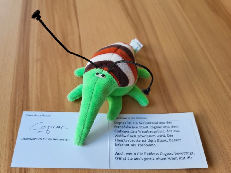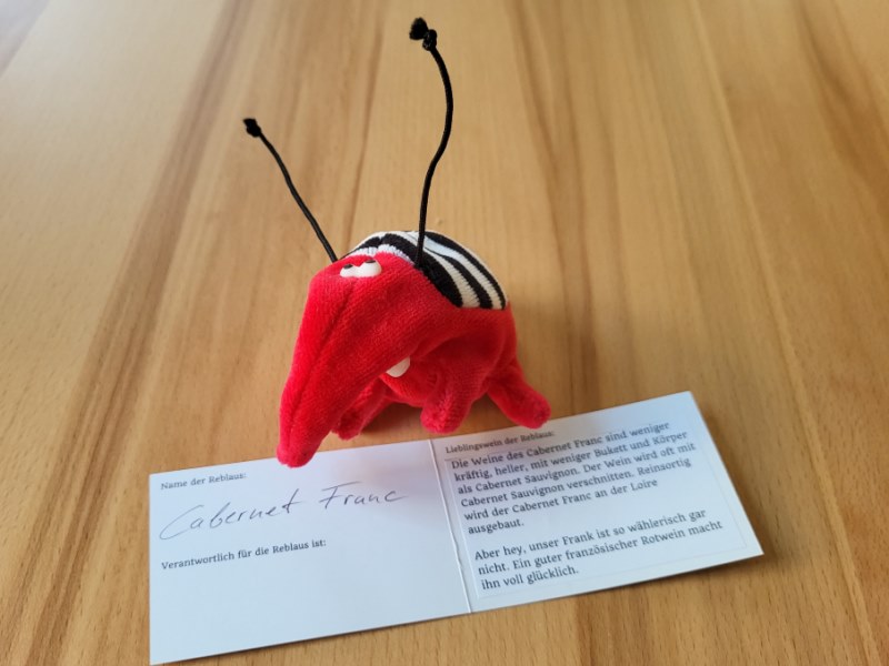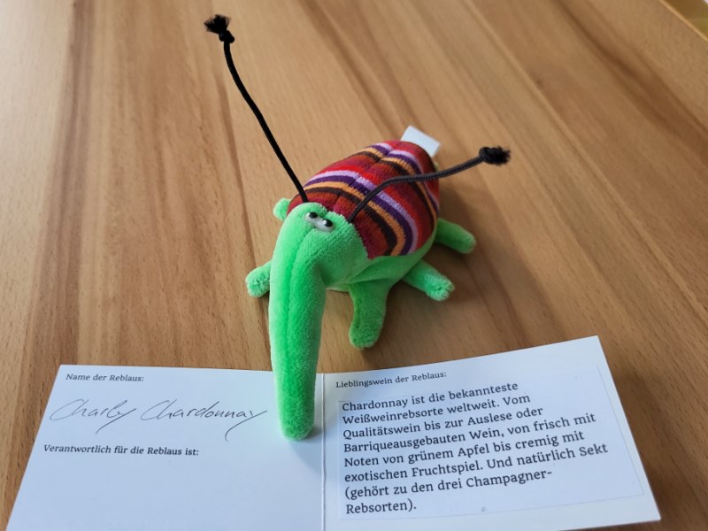 Auch WeinMomente werden schöner, wenn wir sie teilen. In meinem Studium zur Sommelière habe ich Unterstützung bekommen. Zwei Plüsch-Rebläuse, Bordeaux und Chablis. Sie durften bei keinem Weinabend fehlen und schon bald wollten weitere so eine „geile Reblaus“ haben.
