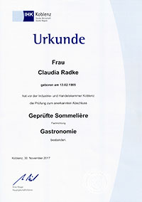 Im November 2017 habe ich das Studium erfolgreich beendet und bin nun staatlich geprüfte Sommelière.